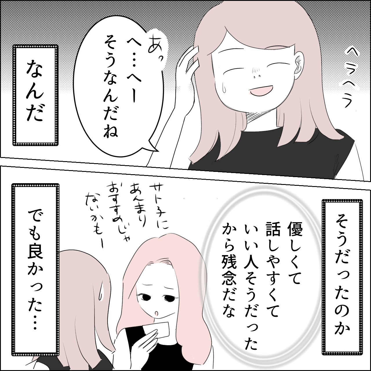 国宝級美女との共存はけっこうシンドイ【6】 2022年08月19日 良かったら【1】からご覧ください続きます続きが読みたいと思ってくれた方は拍手で応援よろしくお願いします🙇♀️続きはこちらです【7】 現在連載中の話ですわたしが経験した悲しくて怖い話です【完結】基礎疾患有りでコロナ感染した話です[ほぼ単話]仕事で出会った面白い人達身内が被害者の悲惨な事件の話です【完結】育児漫画:キャラ弁の話です【完結】[単話]うちのおとぼけパパの話です[単話]シリーズで描いています♪ 「国宝級美女との共存はけっこうシンドイ」カテゴリの最新記事 タグ :#国宝級美女#スカッと#ヒエラルキー#スクールカースト#顔面偏差値#引き立て役#取り巻き#下僕#イライラ#モデルの卵 < 前の記事次の記事 > コメント コメントフォーム 名前 コメント 記事の評価 リセット リセット 顔 星 情報を記憶 コメントを投稿する