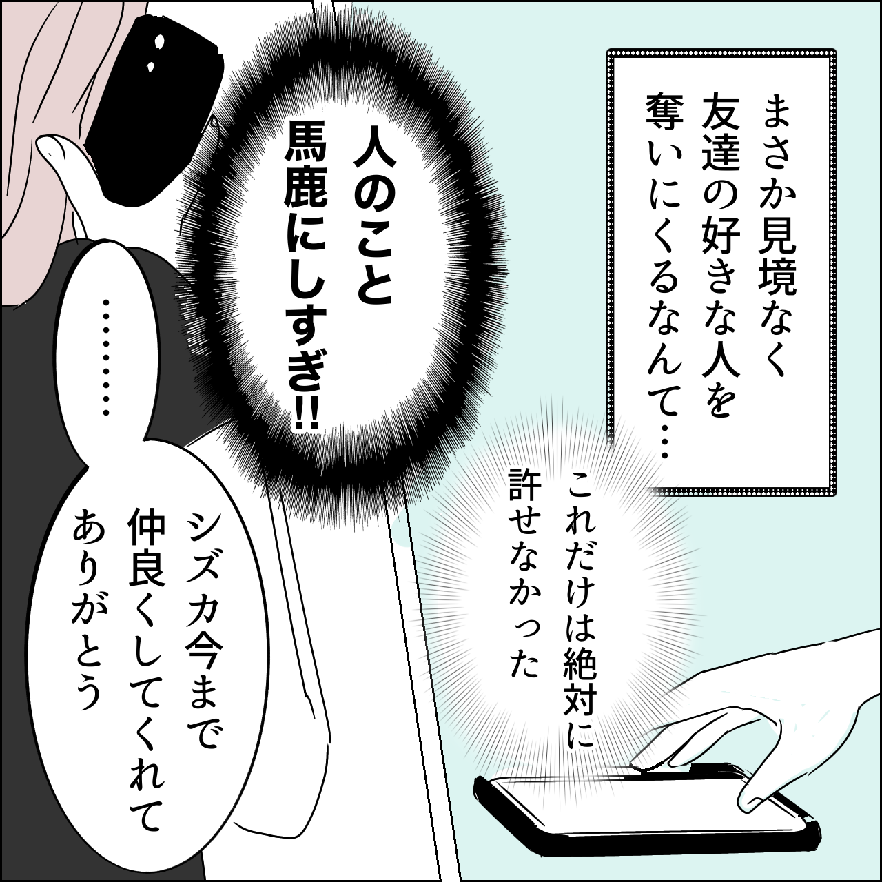 国宝級美女との共存はけっこうシンドイ【24】 2022年10月12日 良かったら【1】からご覧ください続きます応援していただけると励みになります😊いつもありがとうございます!続きはこちらです【25】 現在連載中の話ですわたしが経験した悲しくて怖い話です【完結】基礎疾患有りでコロナ感染した話です[ほぼ単話]仕事で出会った面白い人達身内が被害者の悲惨な事件の話です【完結】育児漫画:キャラ弁の話です【完結】[単話]うちのおとぼけパパの話です[単話]シリーズで描いています♪ 「国宝級美女との共存はけっこうシンドイ」カテゴリの最新記事 タグ :#国宝級美女#国宝級イケメン#ヒエラルキー#スクールカースト#引き立て役#取り巻き#イライラする話#スカッとする話#下僕#略奪 < 前の記事次の記事 > コメント コメントフォーム 名前 コメント 記事の評価 リセット リセット 顔 星 情報を記憶 コメントを投稿する