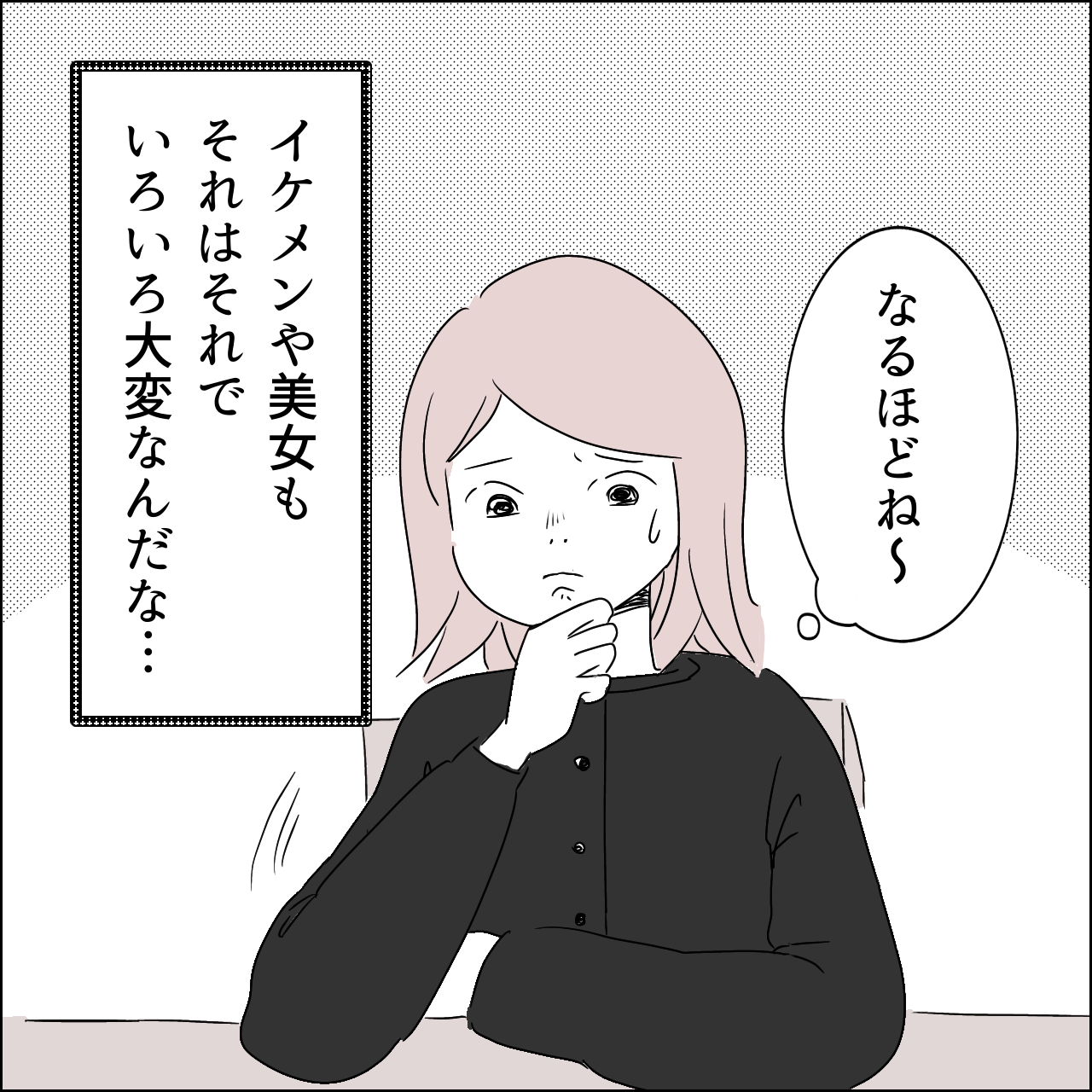 国宝級美女との共存はけっこうシンドイ【27】 2022年10月20日 良かったら【1】からご覧ください続きますウィキ男自身は博愛主義みたいな愛は世界を救う〜✨を地でいく感じの人です。読んでくださり嬉しいです😊いつもありがとうございます!続きはこちらです【28】 現在連載中の話ですわたしが経験した悲しくて怖い話です【完結】基礎疾患有りでコロナ感染した話です[ほぼ単話]仕事で出会った面白い人達身内が被害者の悲惨な事件の話です【完結】育児漫画:キャラ弁の話です【完結】[単話]うちのおとぼけパパの話です[単話]シリーズで描いています♪ 「国宝級美女との共存はけっこうシンドイ」カテゴリの最新記事 タグ :#国宝級美女#国宝級イケメン#取り巻き#引き立て役#しもべ体質#イライラする話#スカッとする話#裏切り#博愛主義#スクールカースト < 前の記事次の記事 > コメント コメント一覧 (1) 1. 2023年08月31日 10:48 ユキさんが一番性格いい人なのかなって思っていたのになんか違う雰囲気に。サトさん逃げてー 0 隣人(チャト子) がしました コメントフォーム 名前 コメント 記事の評価 リセット リセット 顔 星 情報を記憶 コメントを投稿する