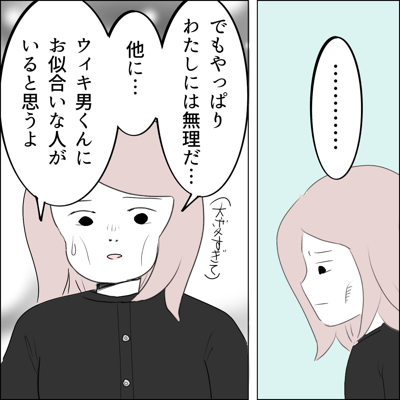 国宝級美女との共存はけっこうシンドイ【29】 2022年10月25日 良かったら【1】からご覧ください続きます付き合おうと言われてはないんですけど…候補を辞退します的な感じです😆読んでくださり嬉しいです😊いつもありがとうございます!現在連載中の話ですわたしが経験した悲しくて怖い話です【完結】基礎疾患有りでコロナ感染した話です[ほぼ単話]仕事で出会った面白い人達身内が被害者の悲惨な事件の話です【完結】育児漫画:キャラ弁の話です【完結】[単話]うちのおとぼけパパの話です[単話]シリーズで描いています♪ 「国宝級美女との共存はけっこうシンドイ」カテゴリの最新記事 タグ :#国宝級美女#国宝級イケメン#ヒエラルキー#スクールカースト#取り巻き#引き立て役#イライラする話#スカッとする話#裏切り#ラブコメ < 前の記事次の記事 > コメント コメントフォーム 名前 コメント 記事の評価 リセット リセット 顔 星 情報を記憶 コメントを投稿する