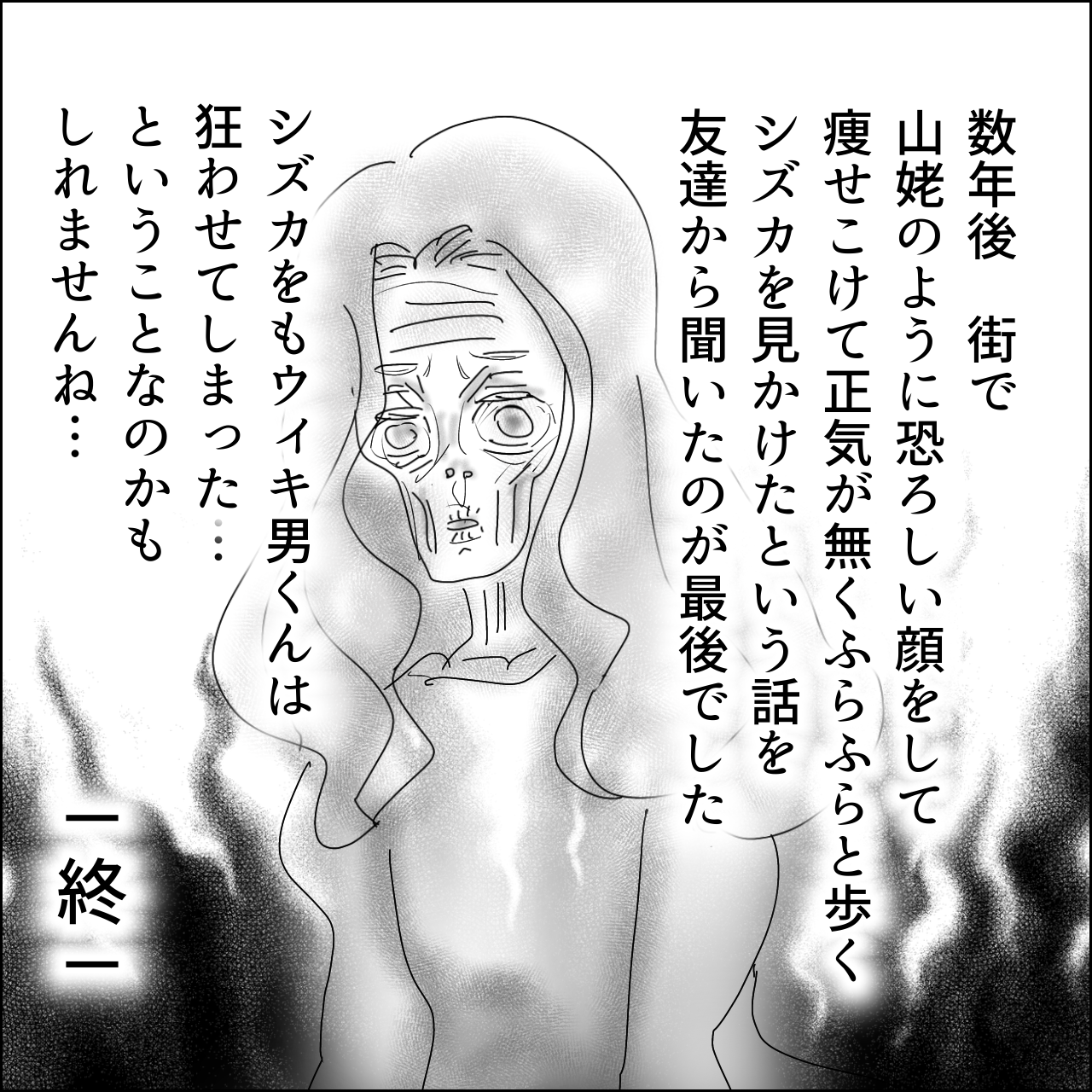 ウィキ男とシズカはその後付き合ったみたいですが、シズカにはいろいろなダメージが年々積もっていき病んでいってしまったようです…